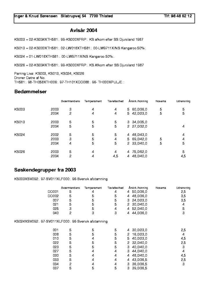 Bifamiliens honningudbytte og bigårdens gens. honningudbytte skal oplyses.